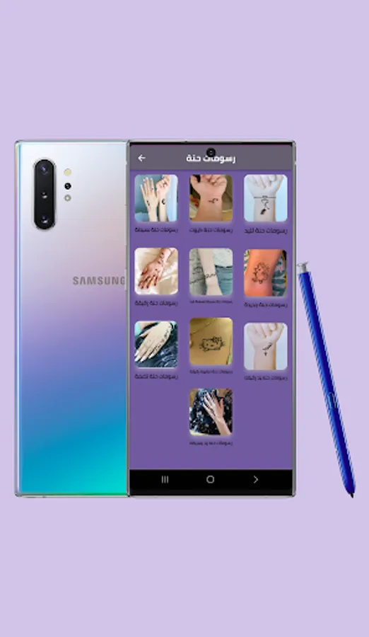 يتضمن التطبيق مجموعة كبيرة ومتنوعة من التصميمات والرسومات الجميلة التي تتناسب مع جميع الأذواق والمناسبات مثل رسومات حنة سهلة للمبتدئين و رسومات حنة و رسومات حنة للبنات و رسومات حنة على البطن والسره و رسومات حنة على الجسم للعروسة و رسومات حنة بسيطة و رسومات حنة كيوت و رسومات حنة لليد و رسومات حنة رقيقة و رسومات حنة بسيطة وسهلة لليد و رسومات حنة جديدة و رسومات حنة صغيرة رقيقة و رسومات حنة ناعمة و رسومات حنة يد و رسومات حنه يد بسيطه و رسومات حنه يد رقيقه ة رسومات حنة ورود و رسومات حنة وردة و رسم حنه ورده و رسم حنه ورد و رسم حنه ورق شجر و رسومات حنه سهله وبسيطه و رسومات حنة على الرقبة والصدر و رسومات حنة سهلة وبسيطة و رسومات حنة بسيطة وجميلة و رسومات حنة ناعمة وسهلة و رسومات حنة بسيطة وسهلة لليد و رسومات حنة ناعمة للصدر