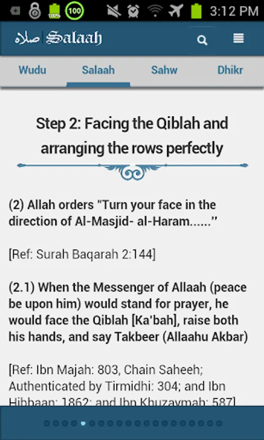 Prayer - the second pillar of islam, observing this grants jannah and leaving this drags us to hellfire. This is the dividing line between the practicing muslims and non muslims. Its obligation ,virtues and extreme importance is reported via a million sources. How can we then not learn the correct method to pray in accordance to the sunnah? This application has a step by step guide detailing the posture, sequence and rules backed up by authentic ahadeeth.