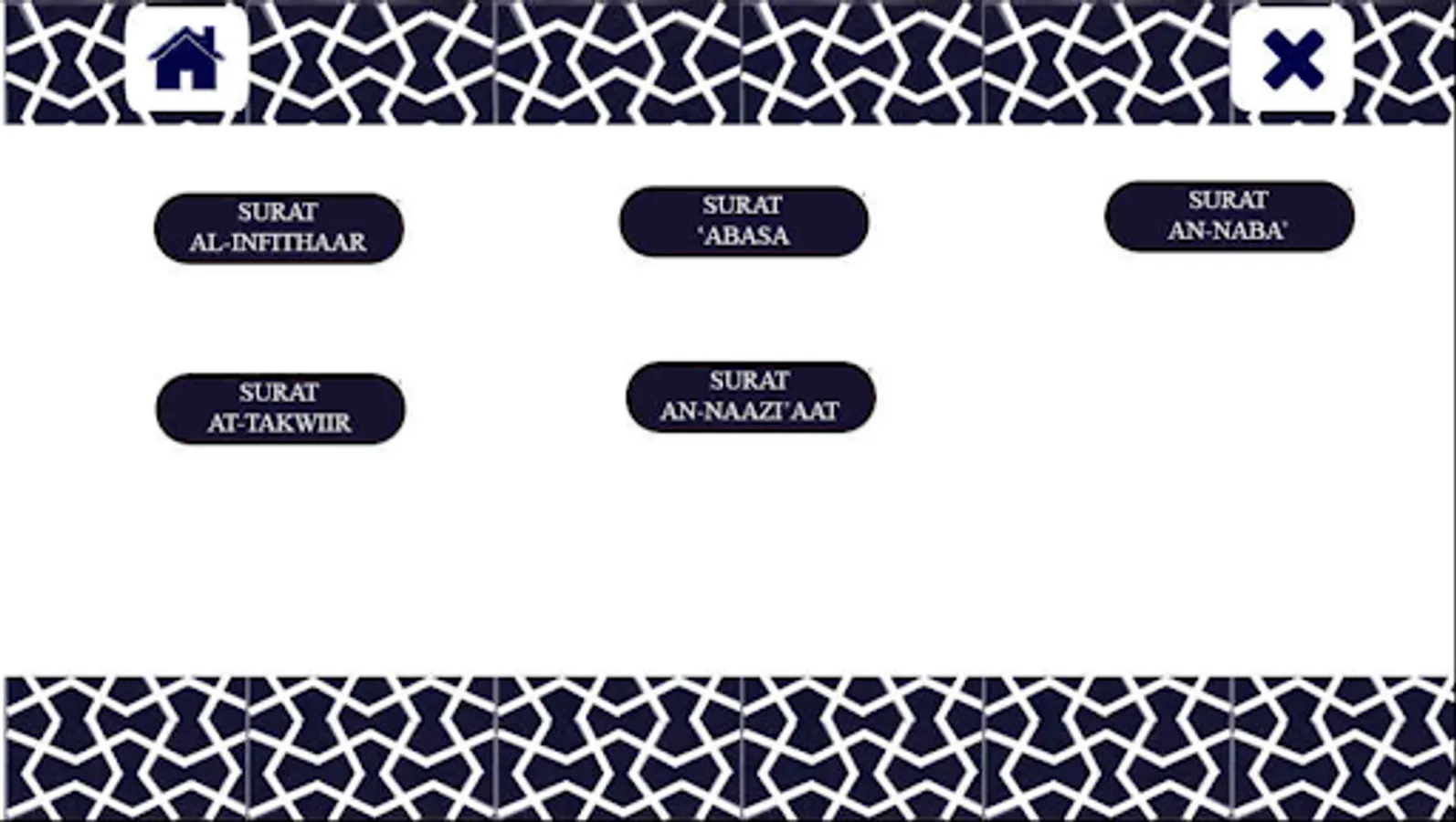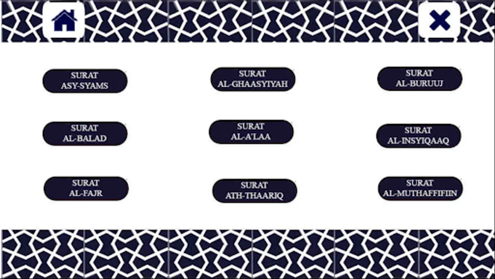 This is last Juz in Al Quran. This murottal contains 37 Surah