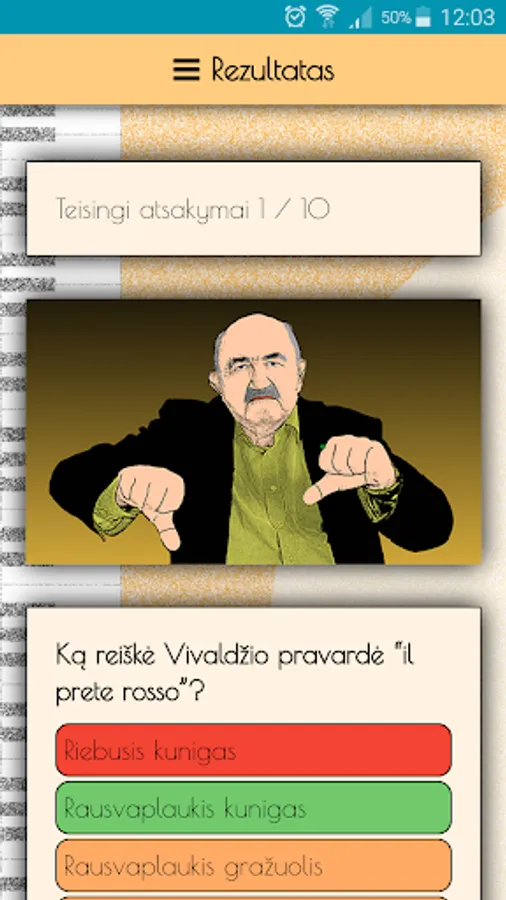 MKviz - is a free app, the main function of helping an easy and interesting way to learn music history. The gadget will meet charismatic maestro Donatas something that will accompany you to a musical journey.