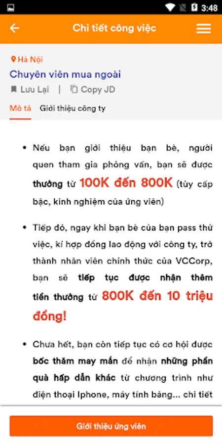- Ứng tuyển hoặc giới thiệu ứng viên phù hợp chỉ với một chạm