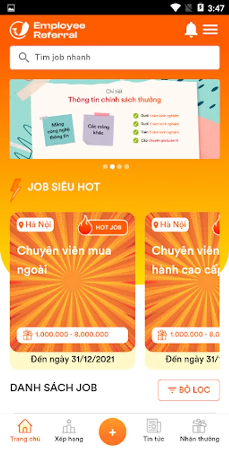 - Nhận thông báo tự động khi có việc làm phù hợp mỗi ngày để trở thành người đầu tiên ứng tuyển hoặc giới thiệu ứng viên