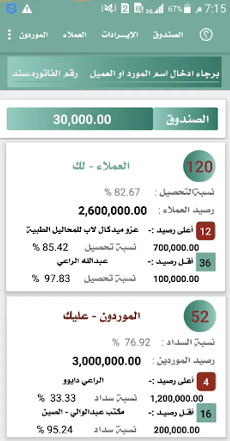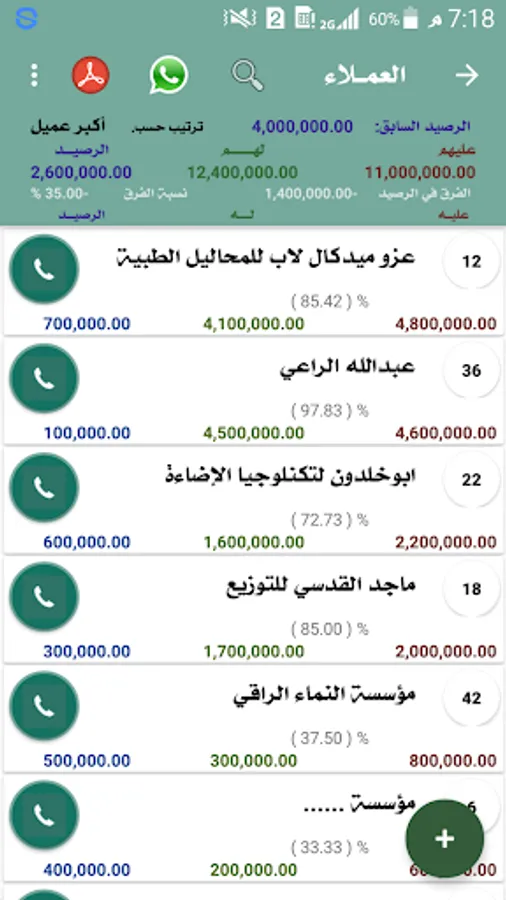 2- Gradually arranging the list of customers and suppliers from largest to smallest or vice versa, either according to the balance or according to the rank of the customer or the supplier.