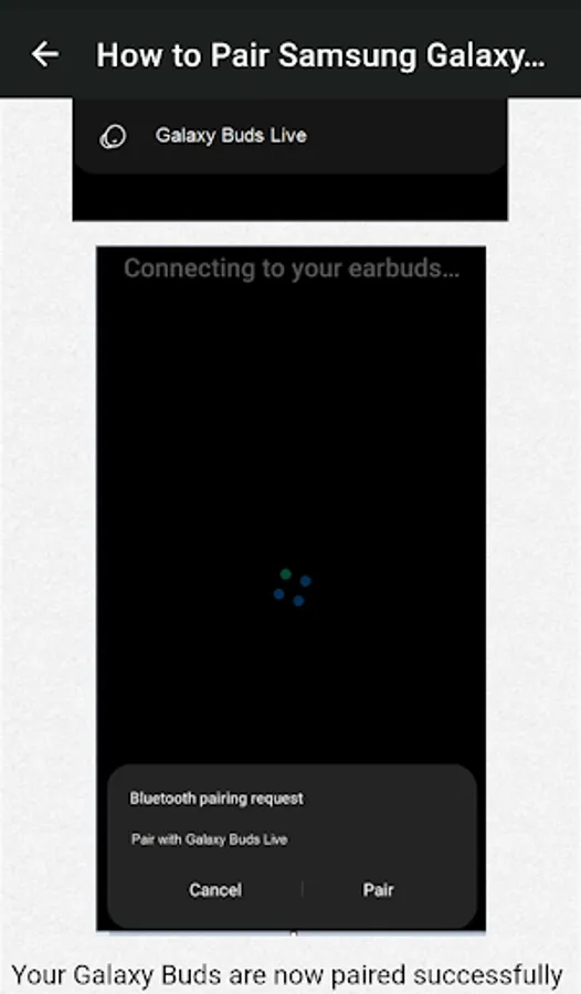This app is a guide that explains how to update Samsung Galaxy Buds Live features, how to pair your device, use music and calling features, touchpad command gestures and active noise canceling.