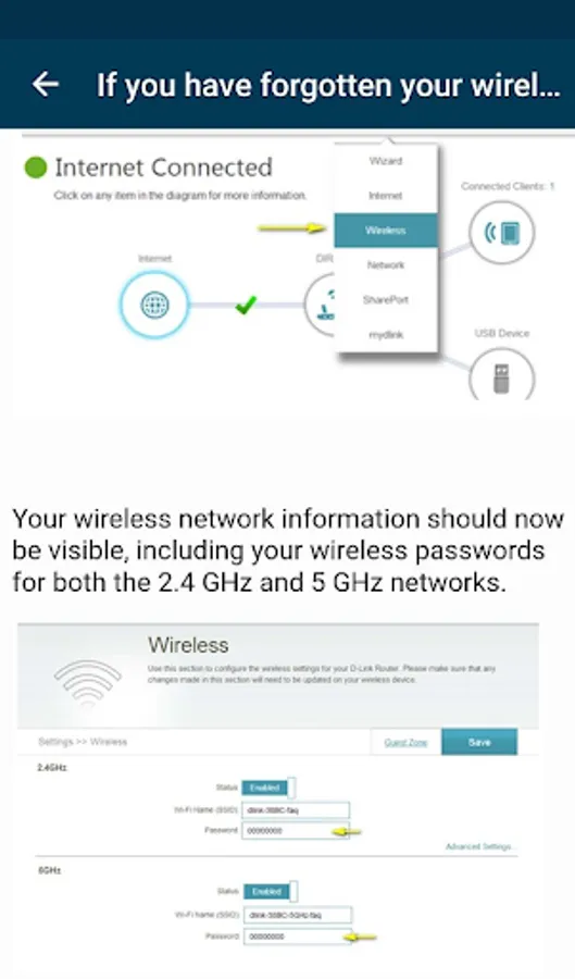 * If you forgot your wireless password, how can you recover it? (D link wifi password change process should be applied periodically.)