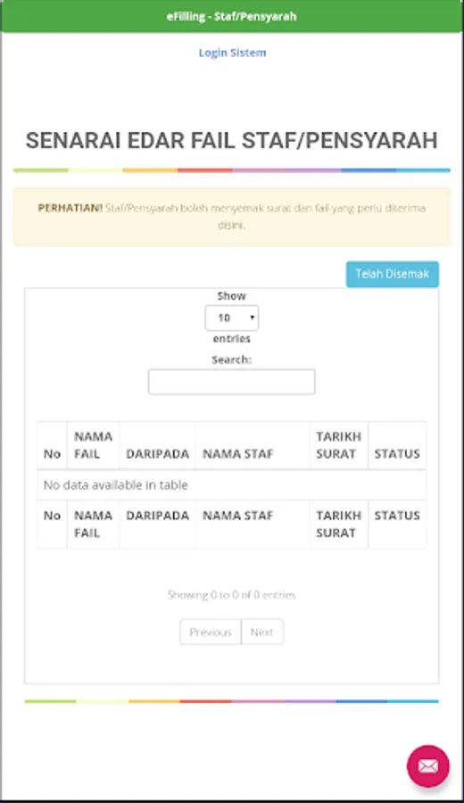 Apps yang dibangunkan khas untuk kemudahan menguruskan surat dan fail di KV Perdagangan