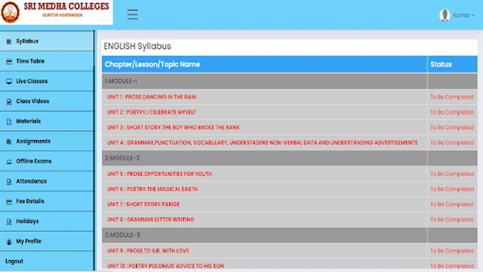 Sri Medha GNT & VJA provides Student Dashboard for Online Classes, Offline Videos, Exam Results ,Attendance,Schedules.