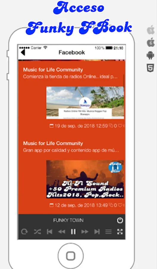Our app currently covers 99% of all Android devices on the market If for whatever reason, it is not possible to play the music on your smartphone, let us know and we will inform you about the available options of other Funky Radios apps.