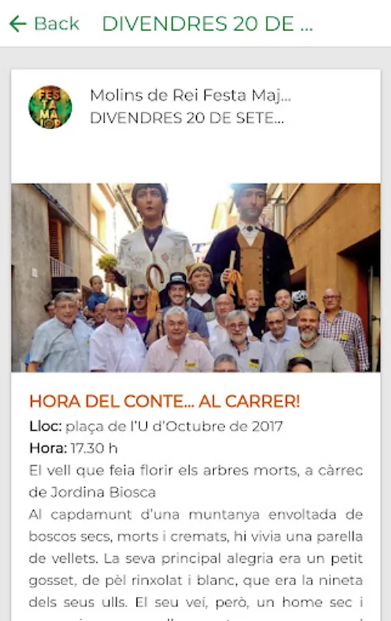 The Festa Major de Mo-lins de Rei is a slat festiu of propositions totally variades i think per fer gaudir tothom de la vila.