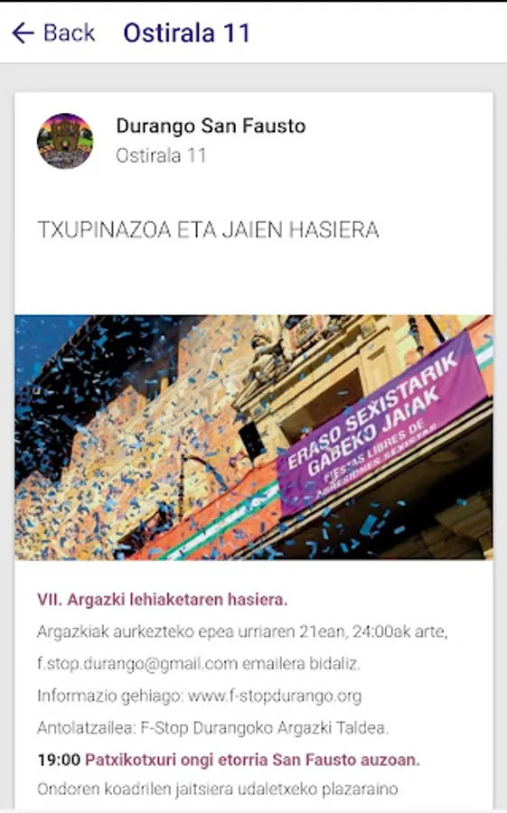 Once again with the fall, the joy and the party returns to the streets and squares of Durango, once again we will take out the garment suit or the white shirt from the bottom of the closet, we will put a blue scarf around the neck or red or plaid; Once again the sound of txistu will pass under our window, we will eat paella and dance with Luhartz.