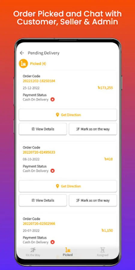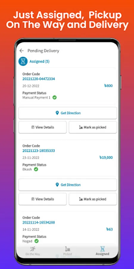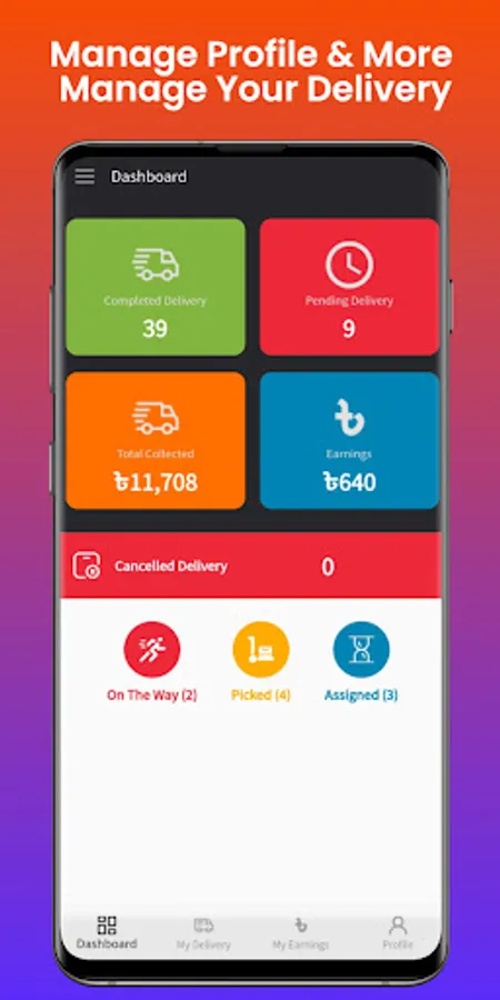 • Cancelled Delivery, On the Way Delivery, Picked Delivery, Assigned Delivery