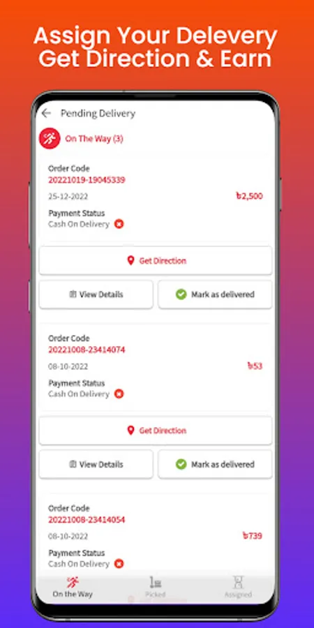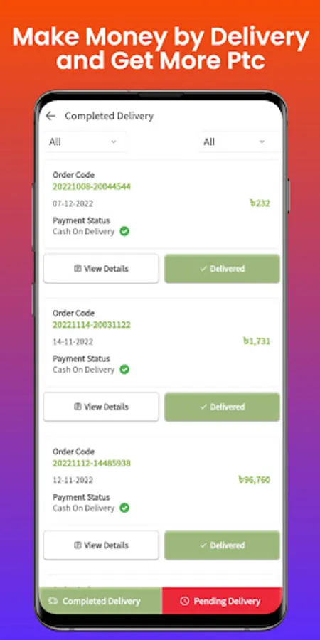 • Completed Delivery, Pending Delivery, On the Way Delivery