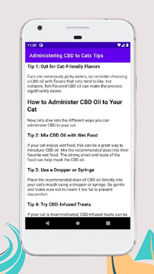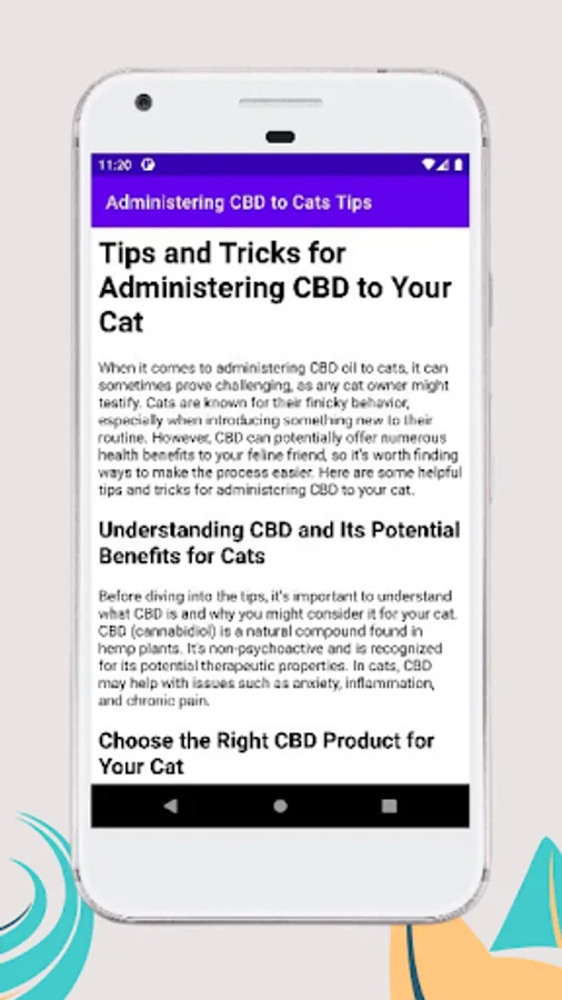 This app provides practical tips and tricks for administering CBD to cats. It begins with an overview of CBD and its potential benefits for cats, followed by advice on choosing the right CBD product. The guide then explores various methods of administration, including mixing CBD oil with food, using a dropper, and opting for CBD-infused treats. The app emphasizes the importance of monitoring your cat's reaction and consulting a veterinarian.