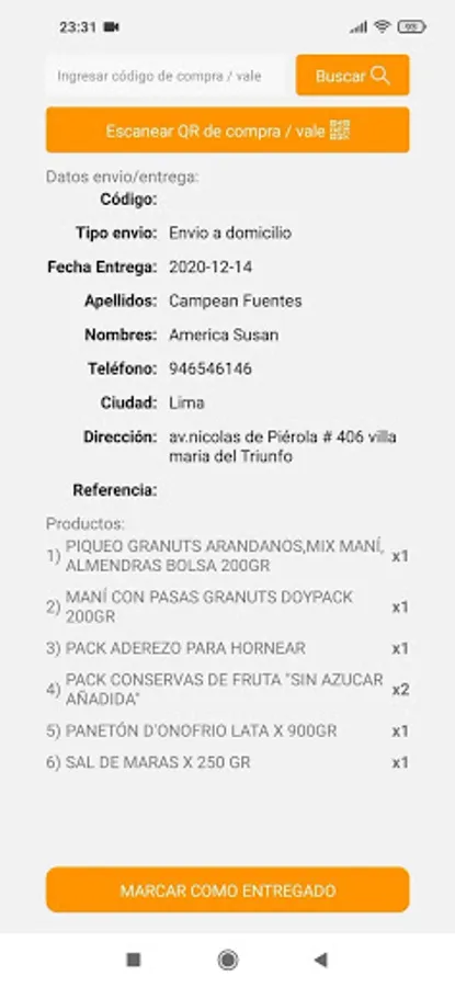 Application to scan purchase codes and soeasy vouchers, it is necessary to deliver to the sales person and be able to do the correct verification.