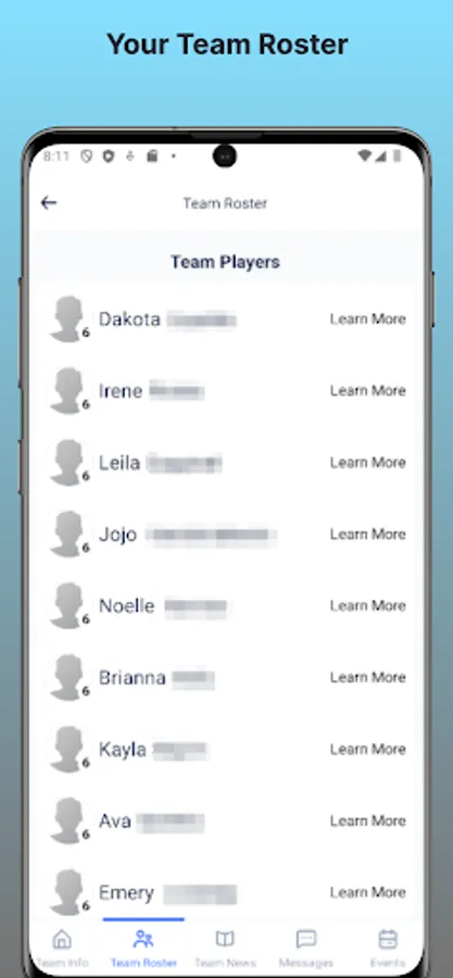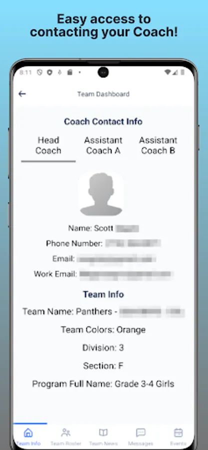 - View Player Information such as Avatar, Name, Jersey Number, Parent’s Names, Emails, & Phone Numbers.