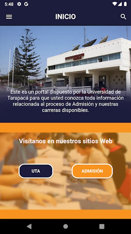 Admission UTA is an application available for students who are in the stage of admission to Higher Education, which allows to know the academic offer of the University of Tarapacá in its Central House in the city of Arica and its Headquarters in the city of Iquique.