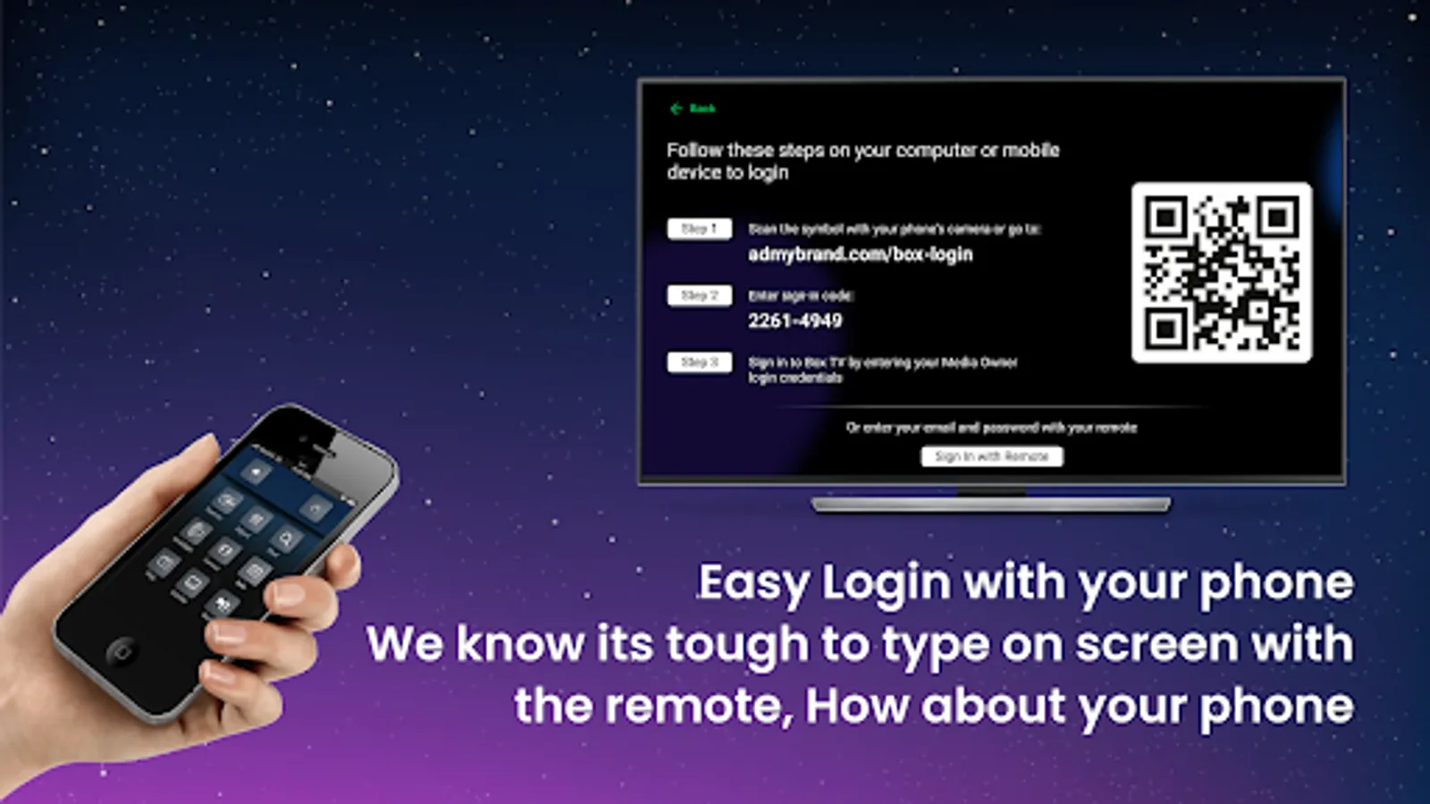 SimplY sign up as media owner on admybrand.com and use those credentials to login to the Box App