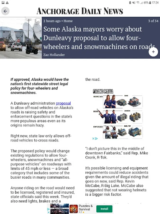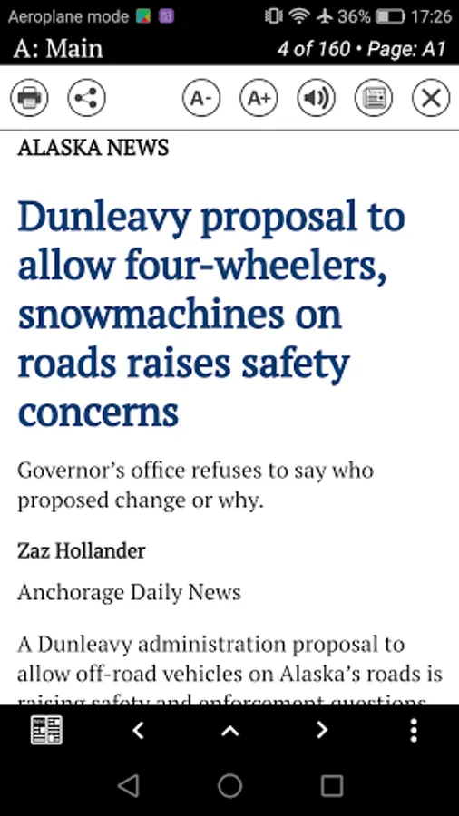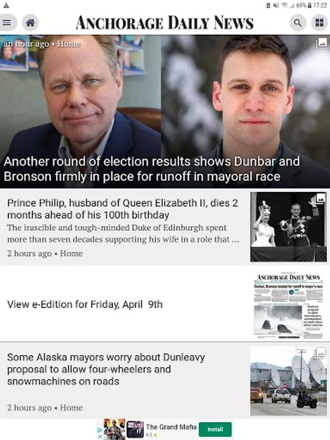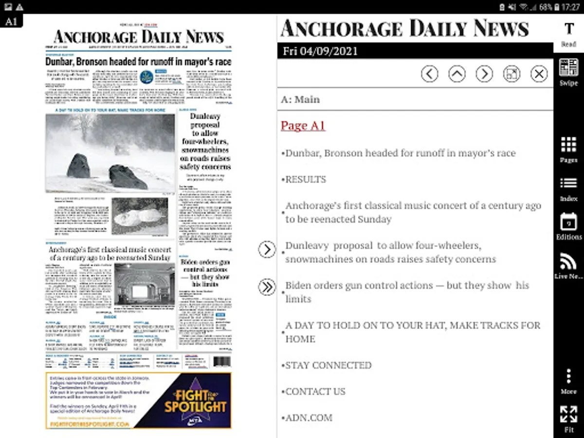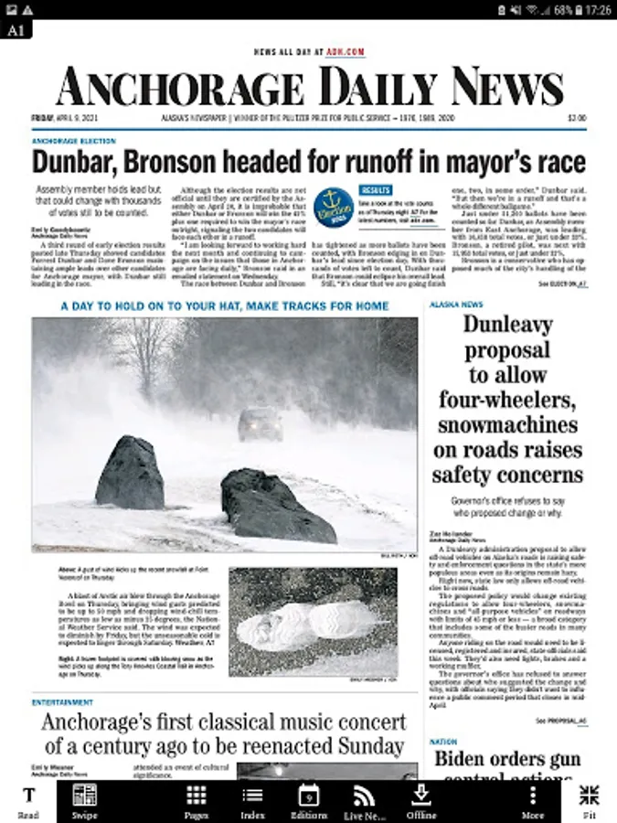 Alaskan news at your fingertips, with every article and picture intact, just as you would read in the printed newspaper edition of the Anchorage Daily News.