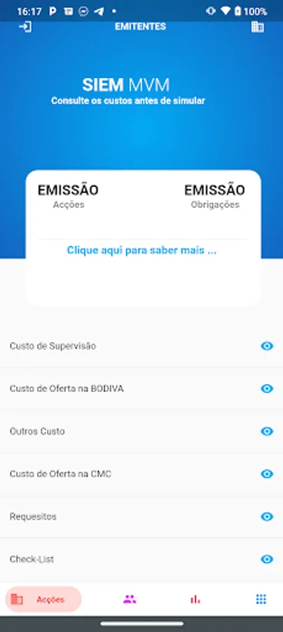 The purpose of the Securities Market simulator “SIEM-MVM” by CMC - Comissão do Mercado de Valores, is to be a source of information for market participants, where different players [issuers, investors and other entities] can have access to registration, supervision and brokerage information.