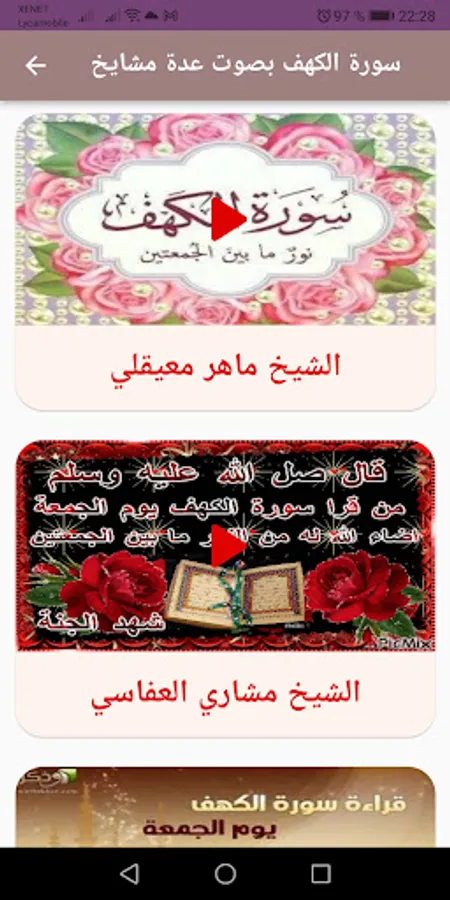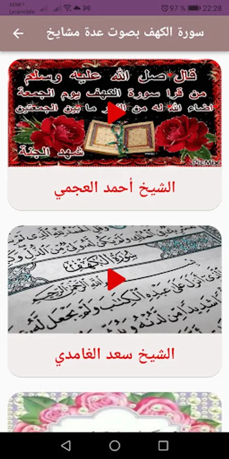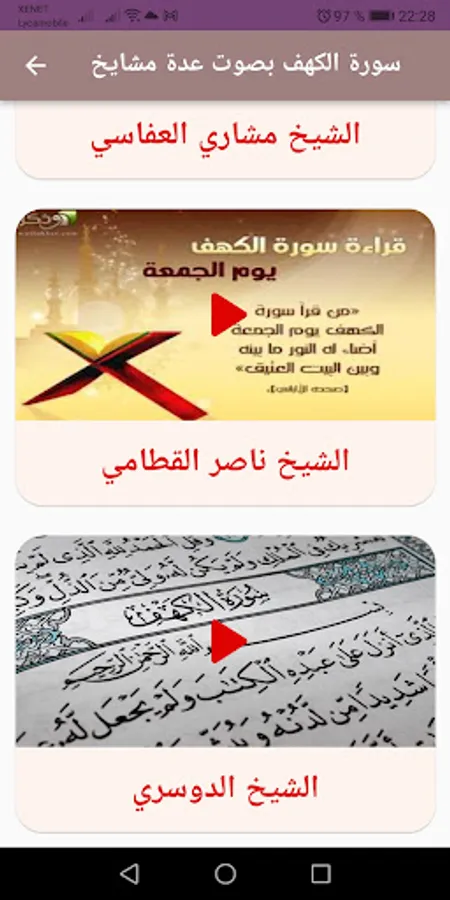 The application "Surat Al-Kahf is repeated; for education without the Net" contains a humble recitation of Surat Al-Fatihah