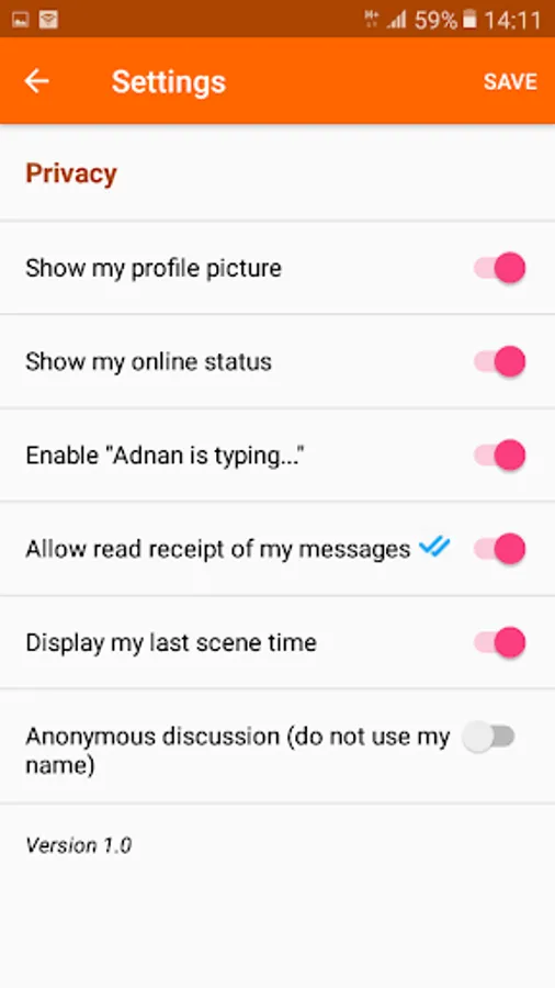 The key idea behind designing this application is to provide full control to your privacy. Which means that your data won't be shared with anyone not even for advertisement. You can control if you want others to see your profile picture or not, or if you want others to see your last scene or not. Even you can control if you want others to know if you are currently online or offline.