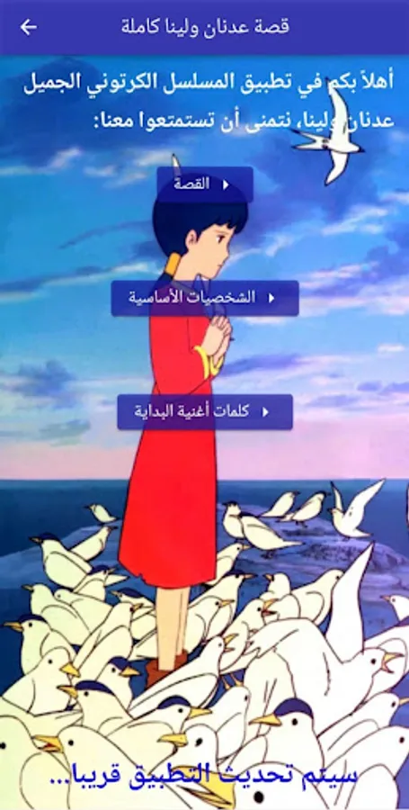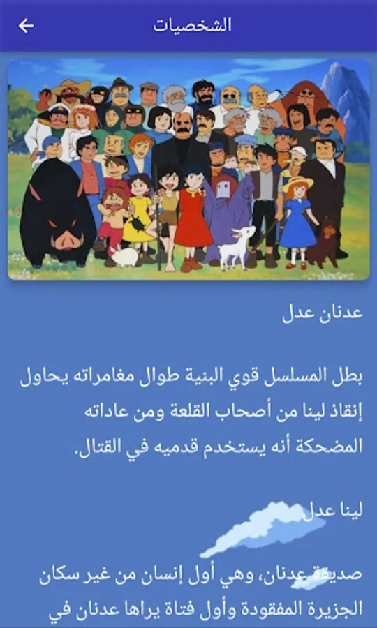 An application that contains the details of the cartoon series Adnan and Lina, which is originally from a Japanese series called "Future Boy Conan"