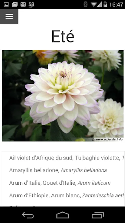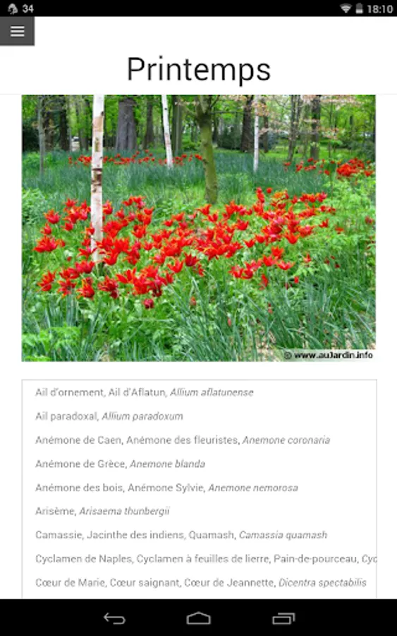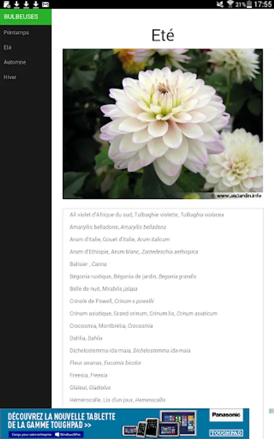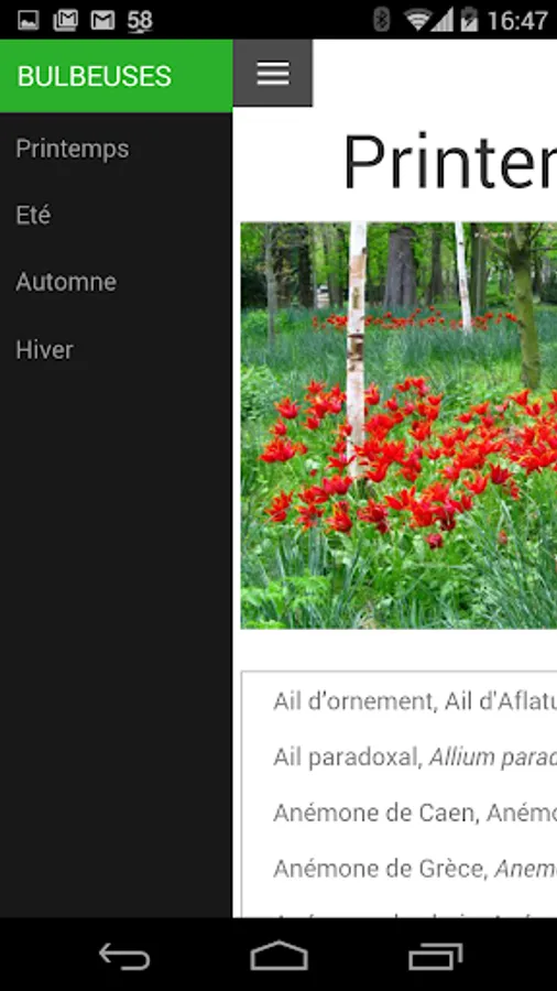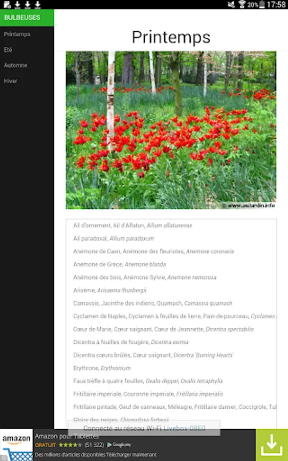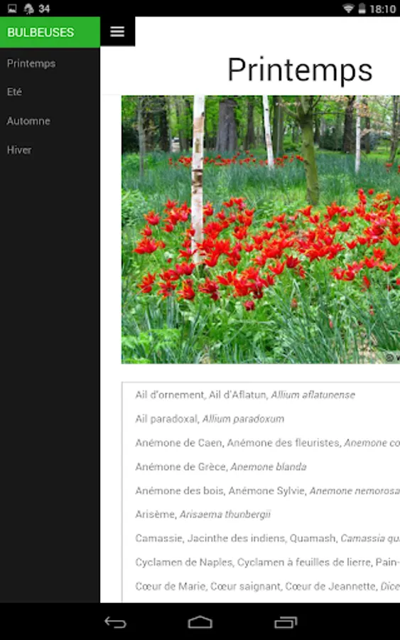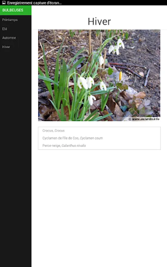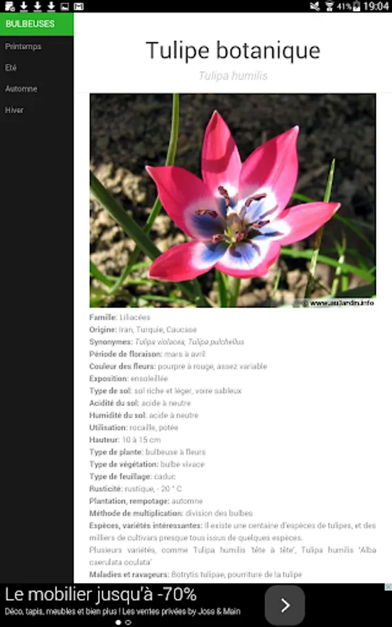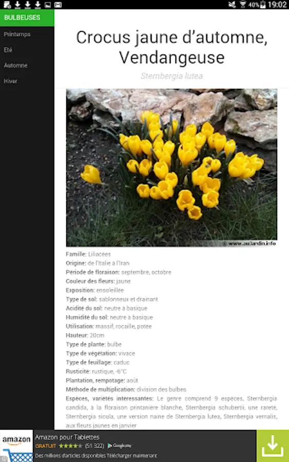 Encyclopedia of flower bulbs per season with their identity cards as well as advice from culture.