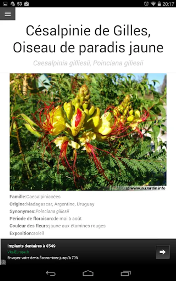 Au Jardin offers Encyclopedia of ornamental garden plants (trees, shrubs, palms, perennials and annuals) with their identities and culture tips.