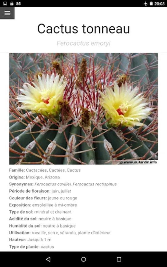 Au Jardin offers the encyclopaedia of succulent plants (cacti and other succulents caudex) with their identities and culture tips. Succulents are fleshy plants that have adapted to survive in arid conditions, the best known are of course the cactus.