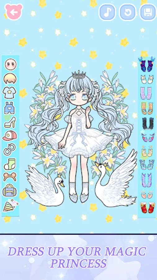 ❄️In the casual cute game,many beautiful outfits are waiting for you in our anime princess dress up games!Hurry up and create various princess characters.