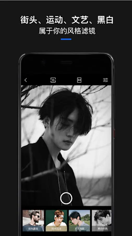 ""Sporty male filter: You can choose N kinds of male style filters such as: street trend, sports sunshine, fresh literature and art, black and white fashion, etc.