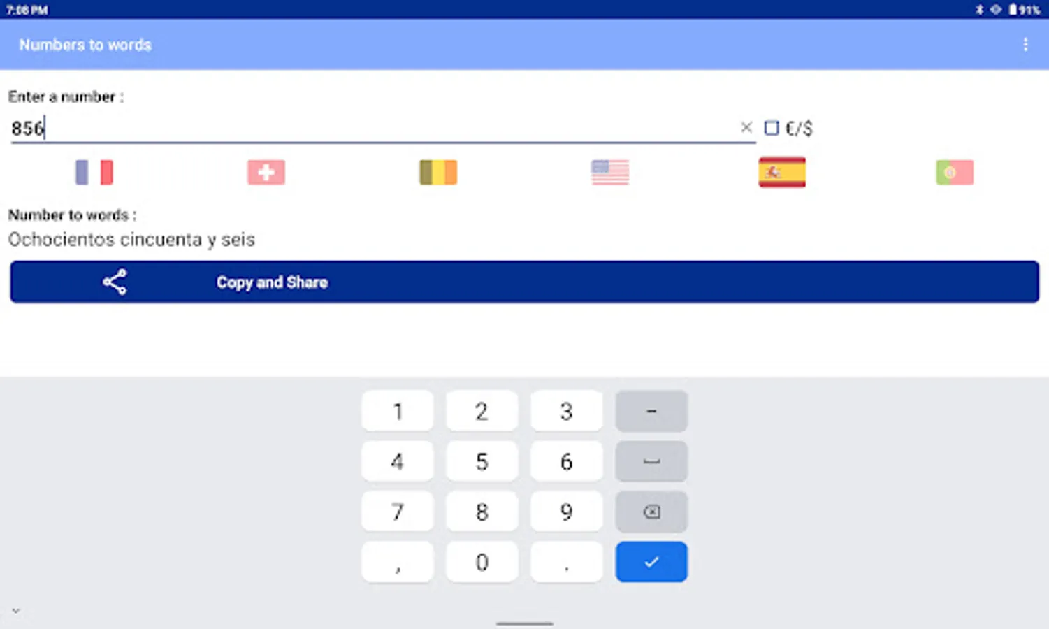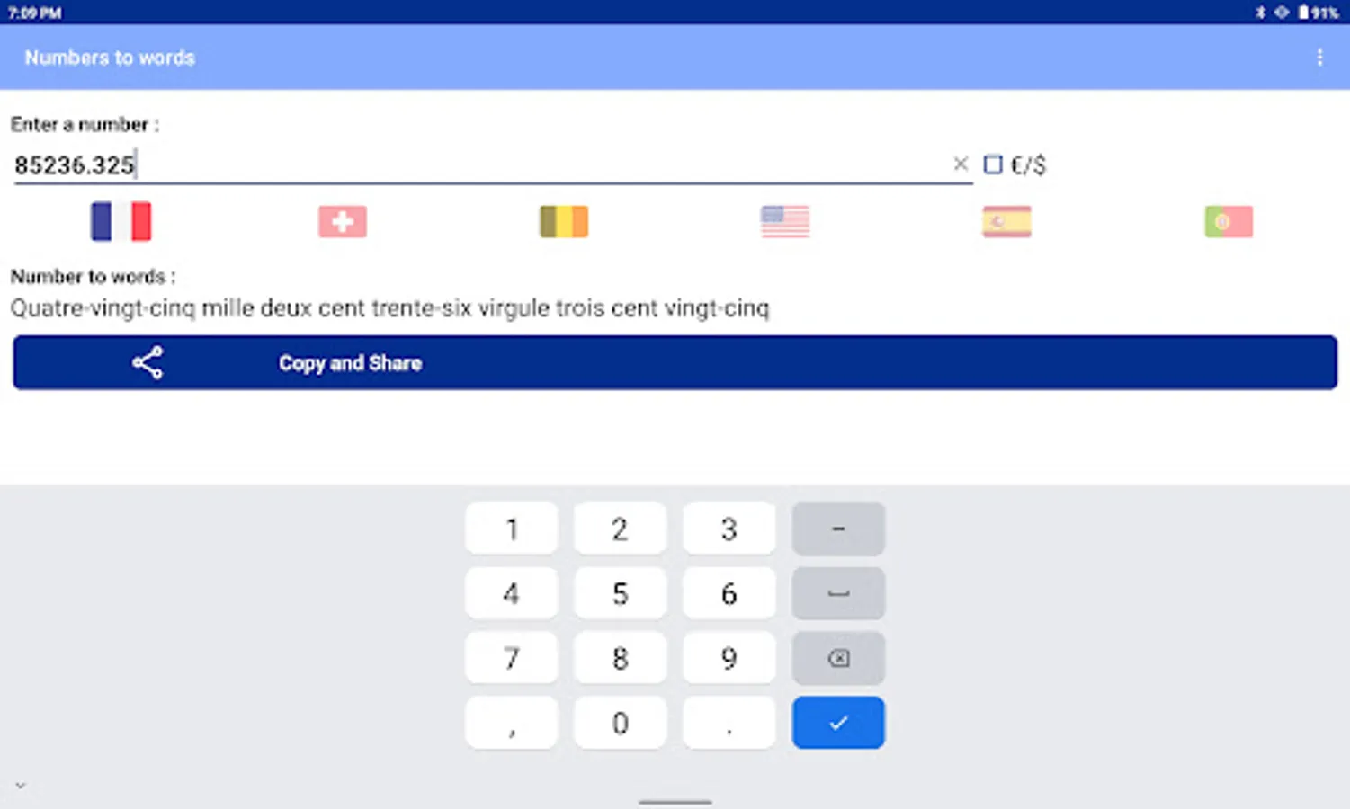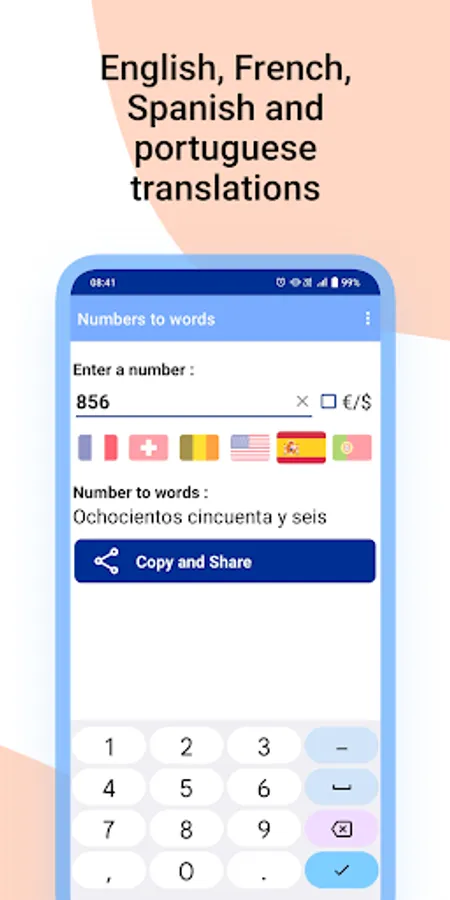 => Numbers are converted in English, Spanish, French and Portuguese
