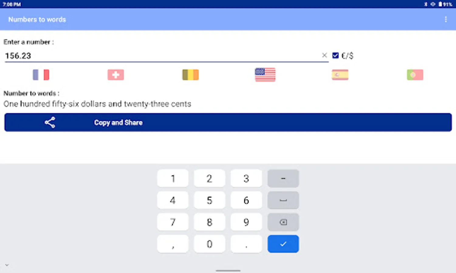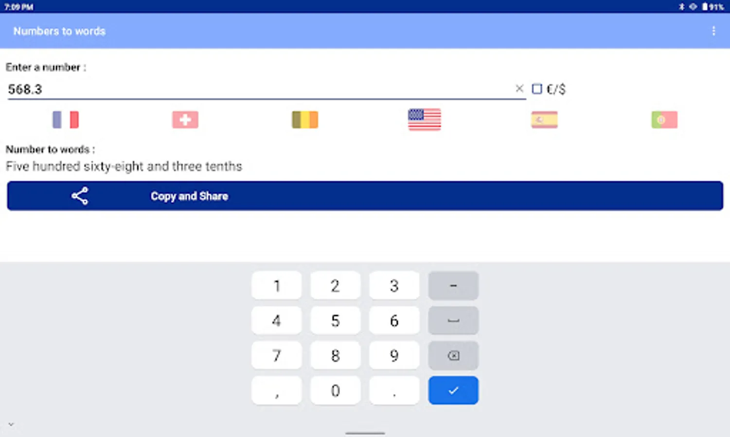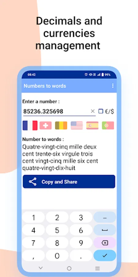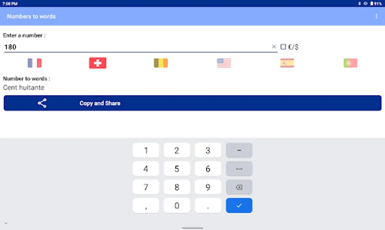 => Numbers are converted in English, Spanish, French and Portuguese