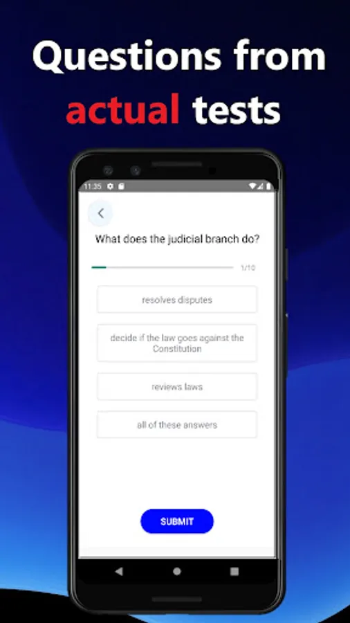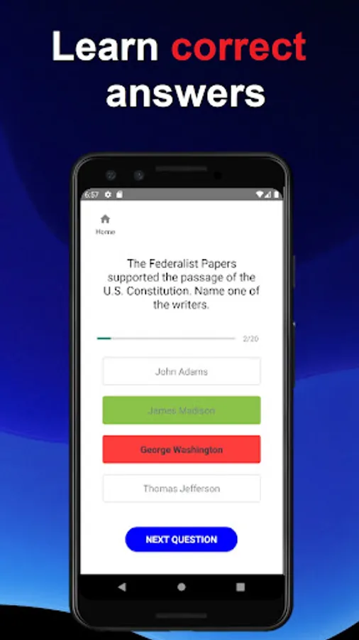 Our app is designed to help you prepare for the test in an easy and convenient way. You will get immediate feedback on your correct and incorrect answers. You can prepare for your US citizenship test (civic test) anywhere anytime with our app, which can be run offline.