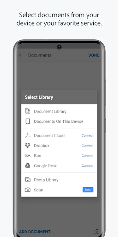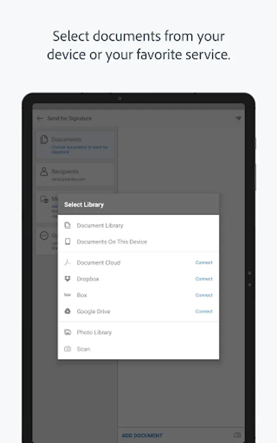 • Work with documents from Google Drive, Box, Dropbox or Adobe Document Cloud.