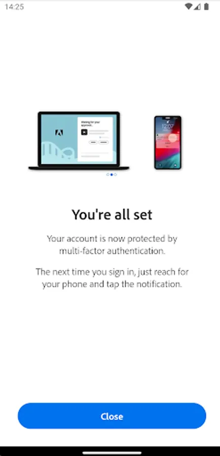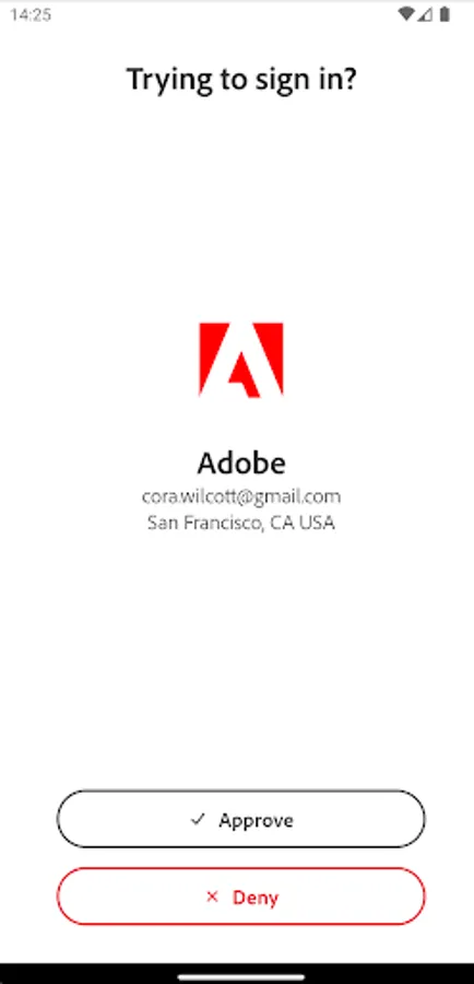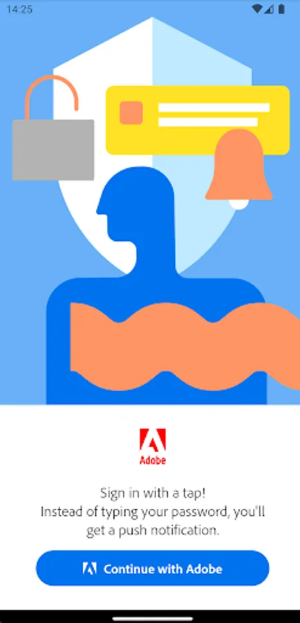 Use Adobe Account Access to sign in with a tap. Each time you need to sign in to your Adobe account, this app will receive a push notification. Approve it, and you're signed in! It's fast, convenient, and secure.