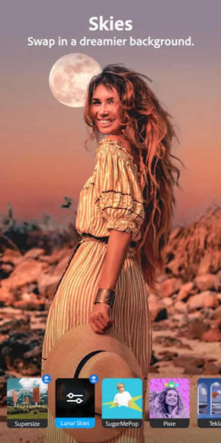 • FUN WITH CAMERA FILTERS: Apply Photoshop camera filters and effects with just one tap. With dozens of custom filters for pictures, it’s easy to swap them in and out and save your favorites to use again and again. The filters for pictures library includes: Portrait, Bloom, Pop Art, Spectrum, Desync, Food, Scenery, Natural Skies, Analog, Night Shift, Dreamcatcher, Supersize, Double Expo, Prism, Mixed Media, Blue Skies, Artful, and more. You’ll also find widely popular lenses like Studio Light, Comic Skies, Interstellar, Celestial, Cosmos, Grit, Dappled, Vibrant, Neon Pulse, and Color Echo to help you create a variety of cool photo effects.