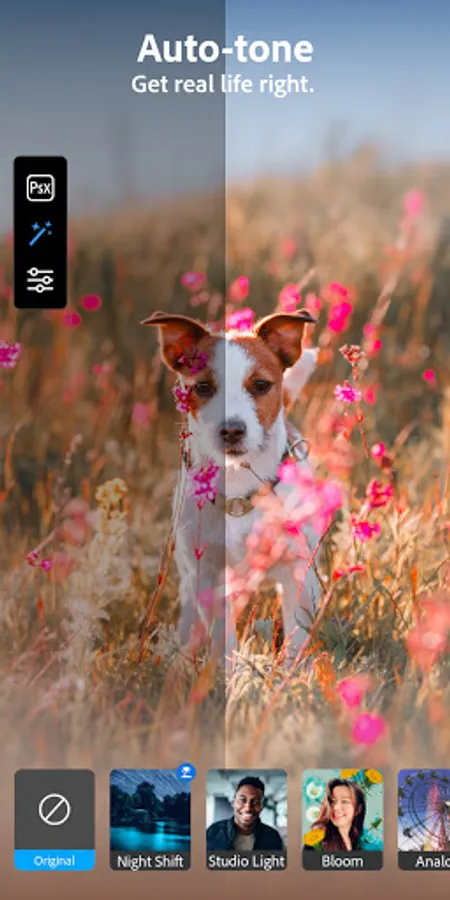 • AUTO-TONE PHOTO EFFECTS: Photoshop Camera gets “real life” right with no more extreme differences between areas of brightness and shadow for enhanced picture editing.