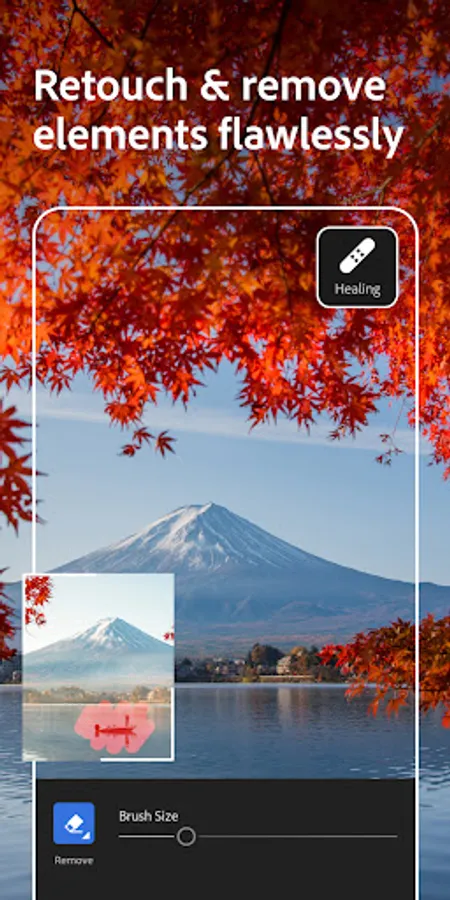 • Retouch & remove objects or distracting elements with the Healing Brush