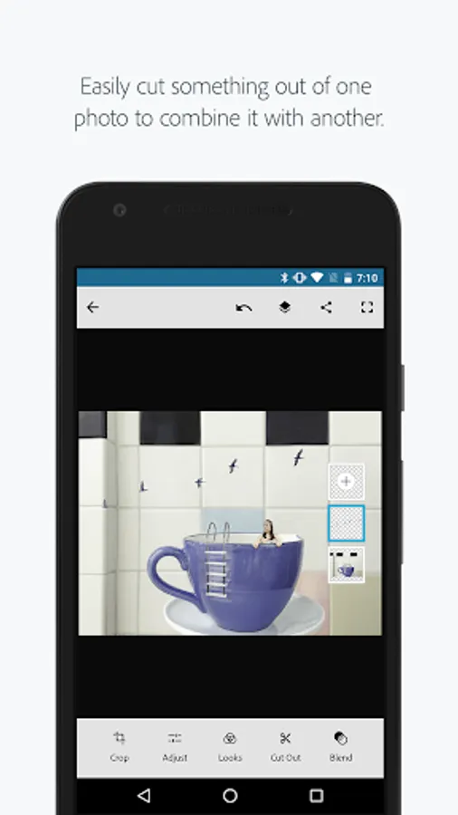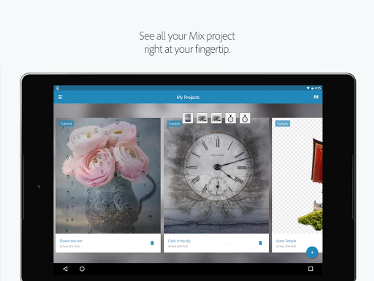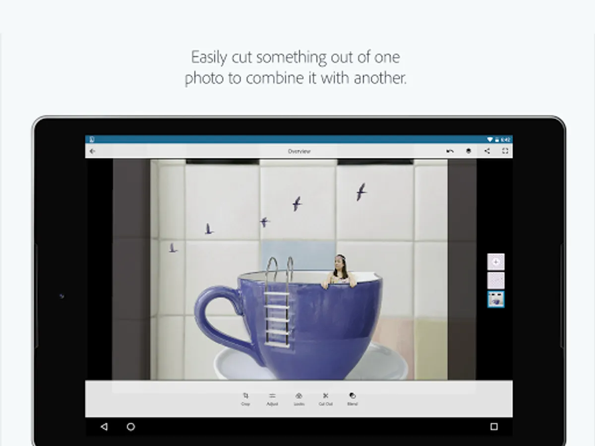 Transform your photography with Photoshop Mix. Cut out and combine images, change colors and enhance your photos anytime, anywhere. Share your creations with friends via social media and send them to Photoshop CC on your desktop for advanced photo editing.