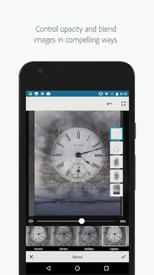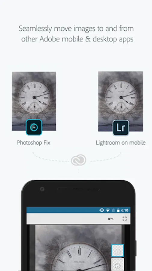 Love photography? Check out the Creative Cloud Photography plan. It gives you Lightroom and Photoshop, the most powerful editing tools around. With Creative Cloud, you can open and edit Photoshop files in Mix and send compositions to Photoshop CC for further refinement—layers, masks and all. Or open and mix Lightroom images. And all your edits are synced across all your computers and devices. Make a change on you Android phone, it’ll show up on your desktop. Take your photography further with the Creative Cloud Photography plan.