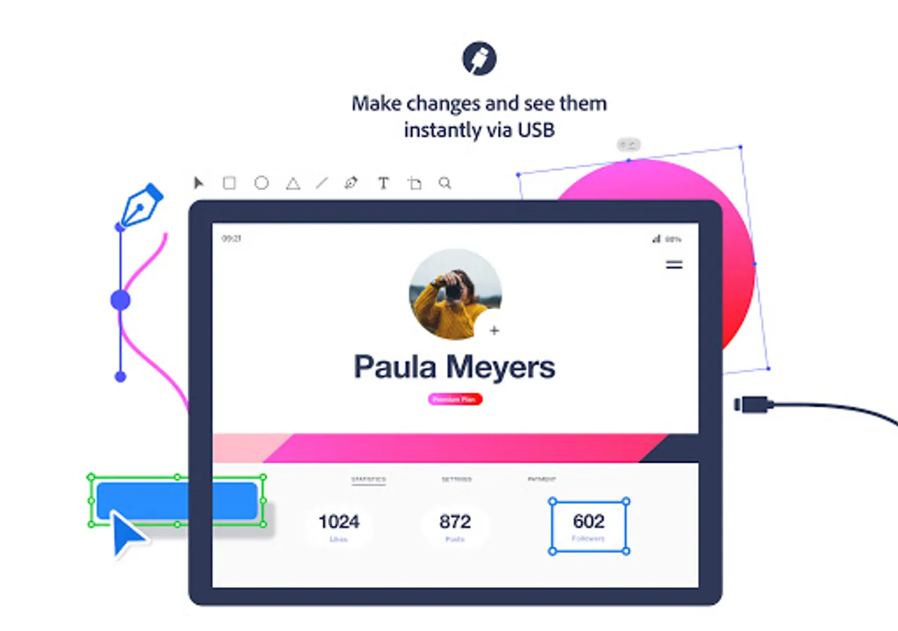 Eliminate the guesswork by previewing your Adobe XD designs complete with transitions on native devices, in real time via USB (macOS only) or by loading them as cloud documents.