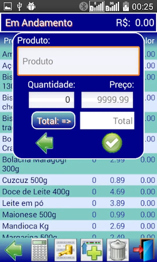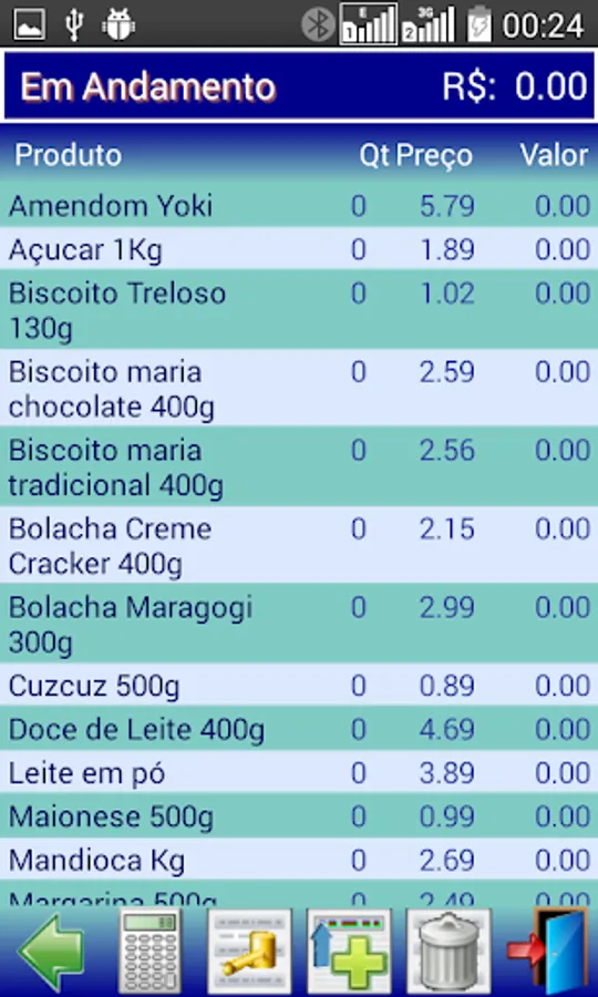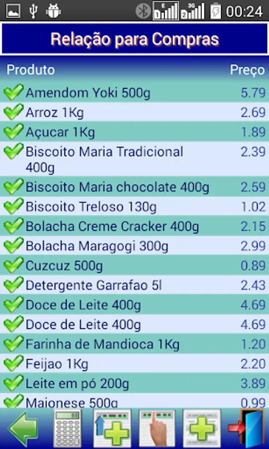 A default purchasing relationship is created that will be used to create the shopping list of the products to be purchased. For example, you create a relationship that contains: Sugar, Rice, Beans, Coffee, and so on. This relationship should have all the products that are normally purchased. In this relationship is the product with its respective price. This price may be the last purchase constant in the last tax coupon. Hence from this relationship, the list is created that will be used there at the time of purchase inside the supermarket. Already in the list, besides the product and price, you will also have the quantity that will be bought. You can put the quantity that will be bought soon, at home, before leaving. You then have a forecast of how much you will spend on the purchase. In the supermarket is only putting the amount of products that go into the basket or cart and update the price if you hear any changes. The application will calculate and update the purchase total. In both the relation and the list, one can delete product, include product, change price, etc ...