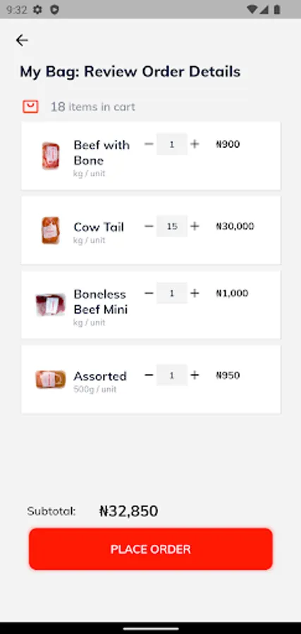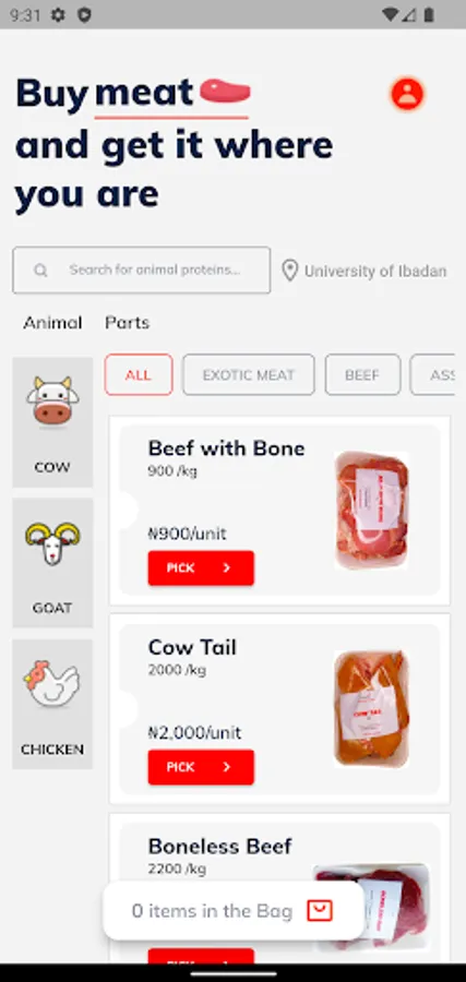 An E-Commerce app preview for the sale of consumable goods.