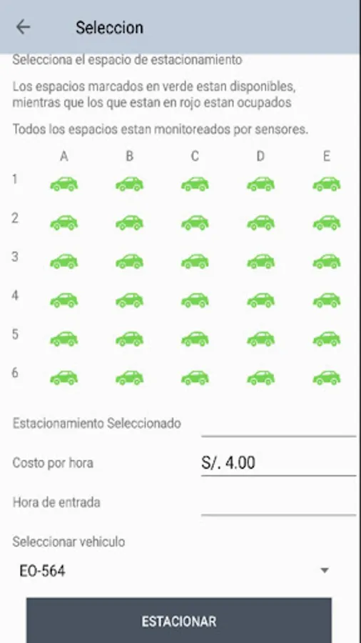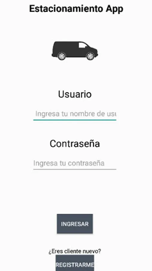 The app allows the registration of new users and the registration of a parking point in the app. Keep in mind that these are not real parking lots, it's just a simulation.