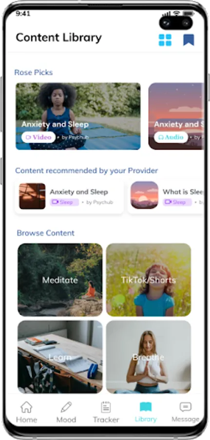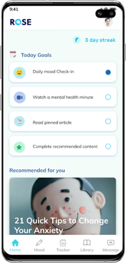 Rose Health Youth is a mental health-focused application that utilizes artificial intelligence to identify symptoms and provides targeted, tailored therapy solutions for its users. The application instructs the user to fill in timed mental well-being assessments and has an in-app journaling function. This is combined with targeted content (e.g., self-help articles), and the assessment results are shared with the individual delivering in-person psychotherapy.