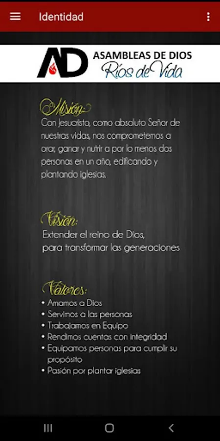 In the Assemblies of God App online, you can find many resources that will edify you. You will find information about the Ríos de Vida church, and you can access all the links of virtual events directly. In the application you can find: