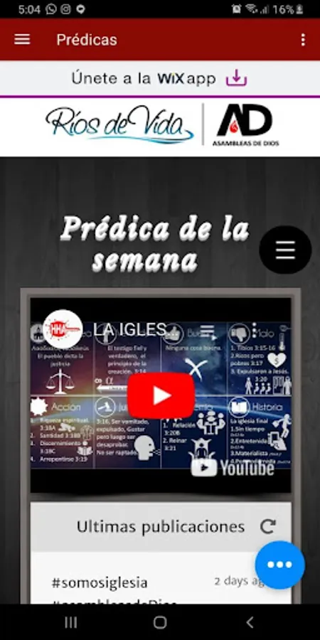 - Access direct links to virtual events of the Ríos de vida church and others.