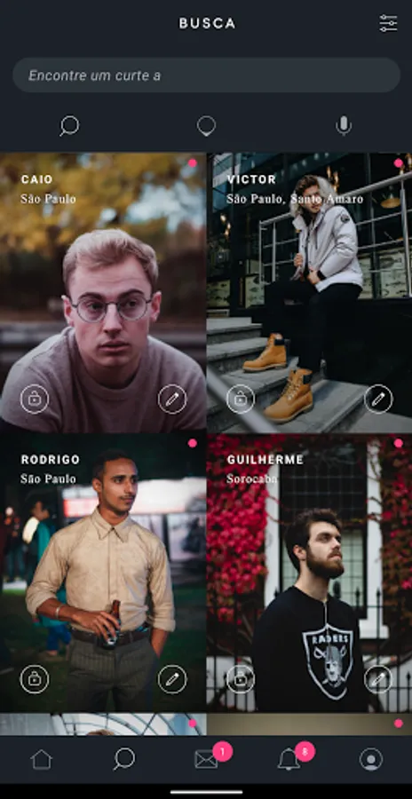 · Use our magic search, through our search bar or our vocal assistant to find your great love: (ex: A carioca surfer lover of Yoga)