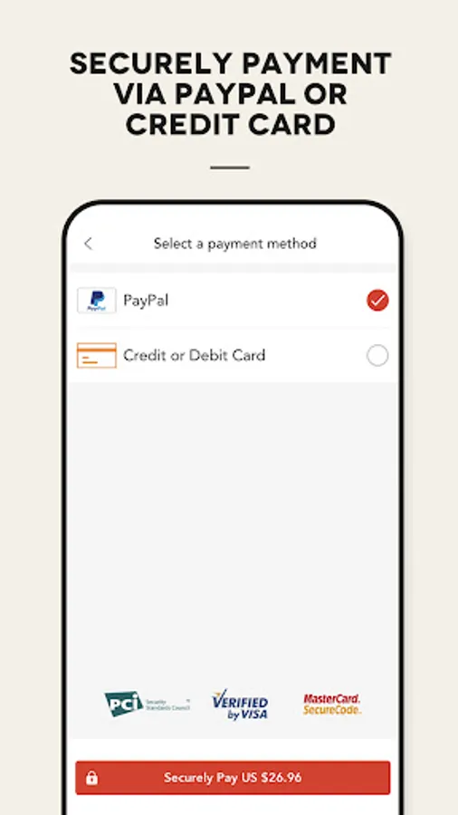 Secure payment via Paypal or credit card